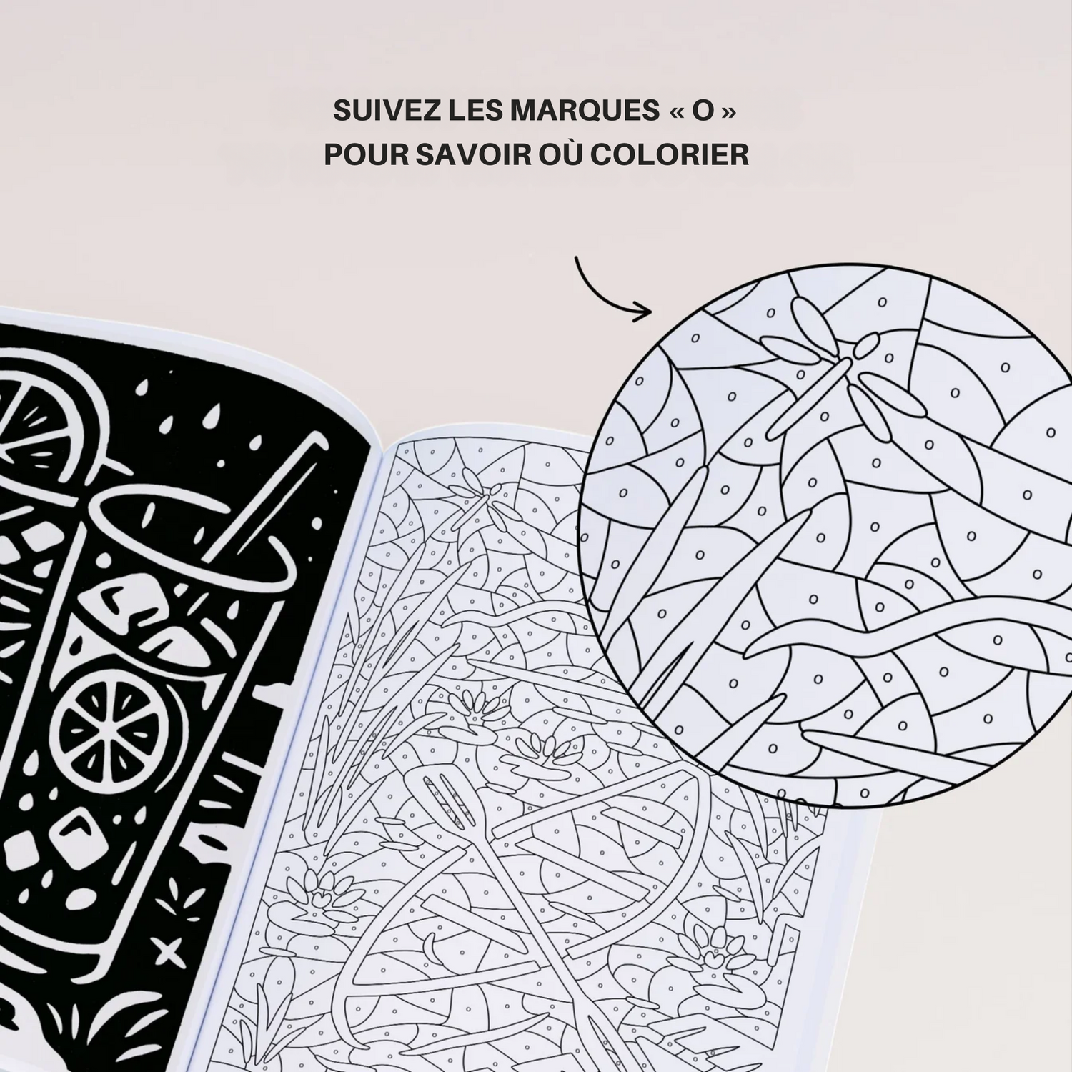 1 Livre Drawly™ – Plus de 60 illustrations mystérieuses à colorier.