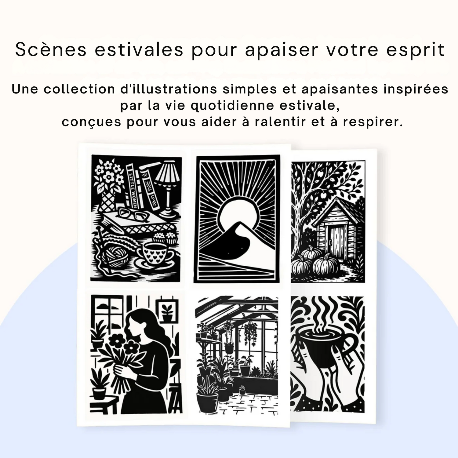 Offrez-vous une parenthèse de calme chaque jour. Avec plus de 60 illustrations apaisantes, ce livre transforme vos gestes en un rituel méditatif qui libère l’esprit du tumulte quotidien. Guidé par de simples repères, chaque page révèle une scène estivale réconfortante, comme un souffle de sérénité rien que pour vous.