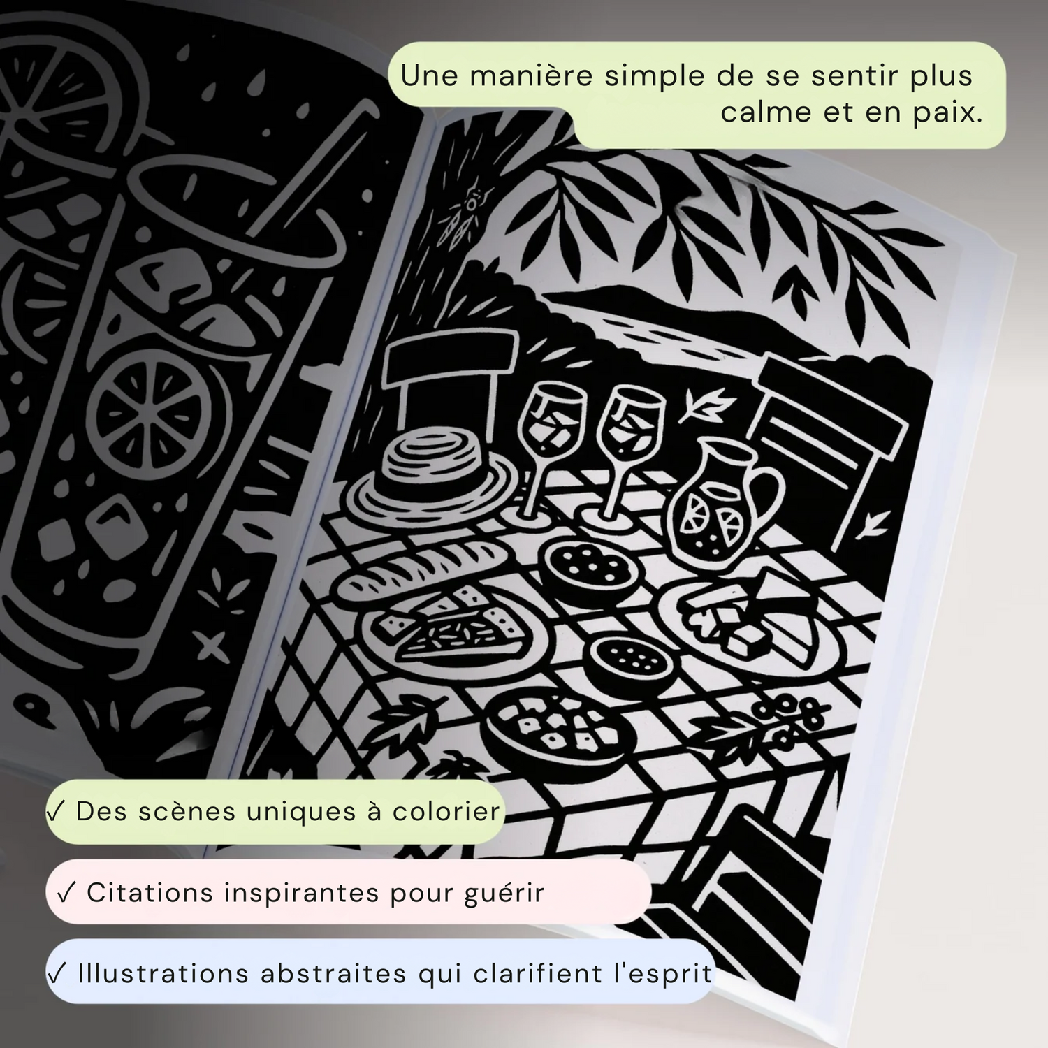 Redécouvrez la joie simple de ralentir avec un crayon à la main. Plus de 60 illustrations en une seule couleur transforment chaque page en une invitation au voyage intérieur. Facile à suivre grâce à des repères clairs, ce livre devient votre rituel estival pour vous recentrer, apaiser vos pensées et savourer un moment rien qu’à vous.